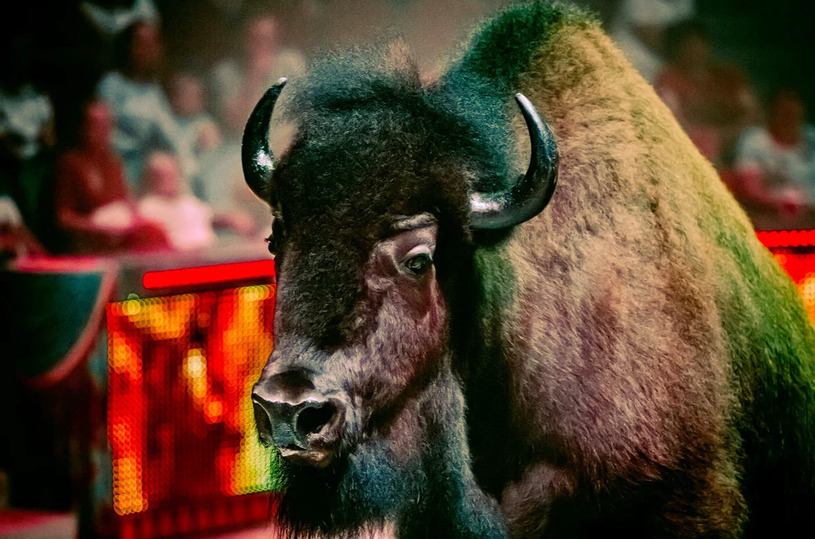 Особое внимание привлекли дрессированные животные, среди которых выделяется уникальный аттракцион с шестью канадскими бизонами — единственный в стране. Также на манеже выступали верблюды, медведи, лошади, питоны и голуби.