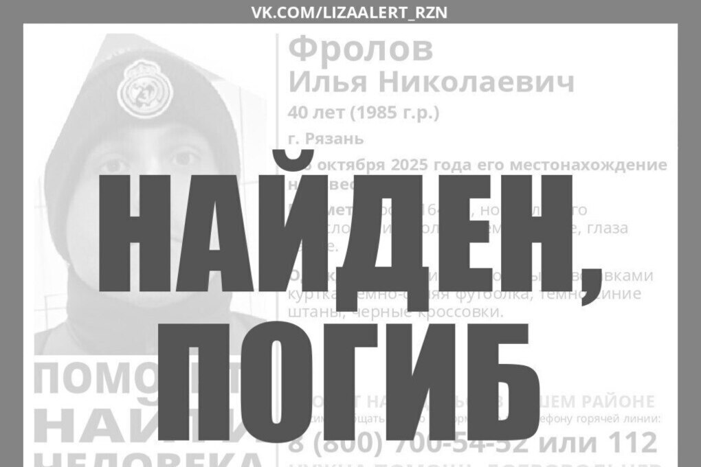 В Рязани найден мертвым 40-летний мужчина. Он пропал 6 октября. Спустя некоторое время к его поискам подключились добровольцы.