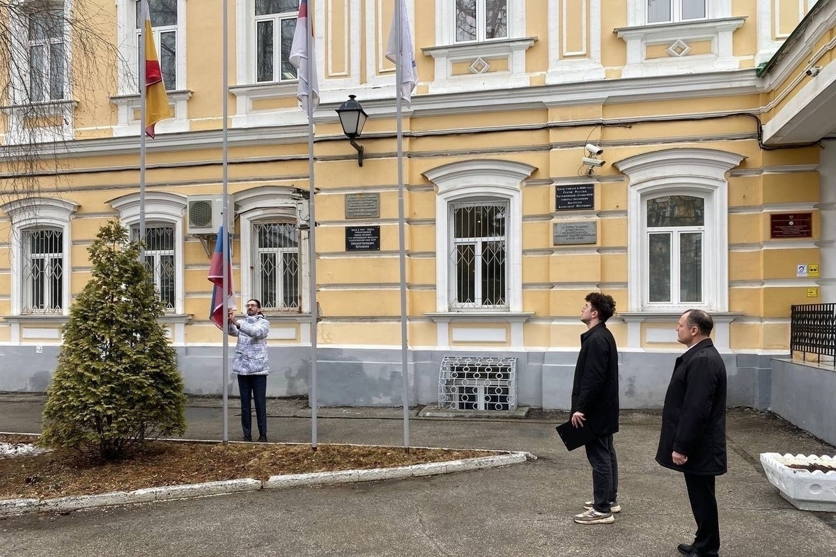 Право поднять флаг было предоставлено студенту 4 курса института физико-математических и компьютерных наук Даниилу Зацепину, который стал обладателем серебряной медали ХХ Московского международного салона изобретений инновационных технологий «Архимед».