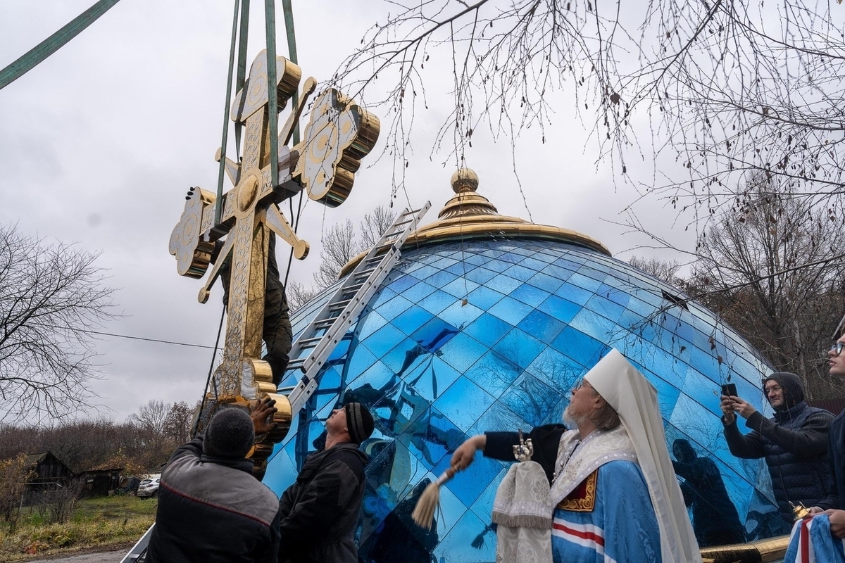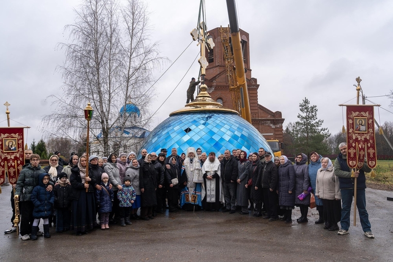 В селе Абрютино Рязанского района освятили крест на купол колокольни. Чин возглавил митрополит Рязанский и Михайловский Марк.
